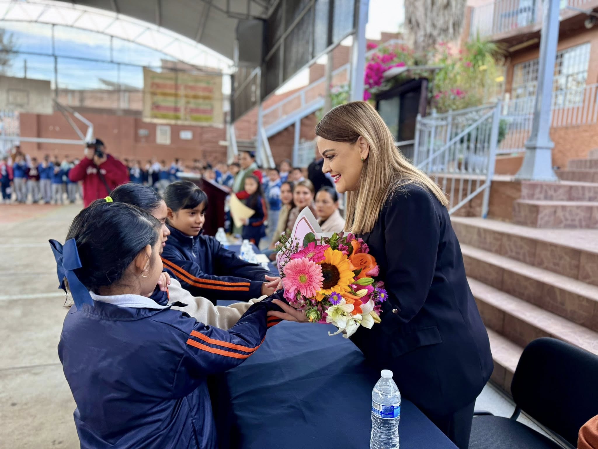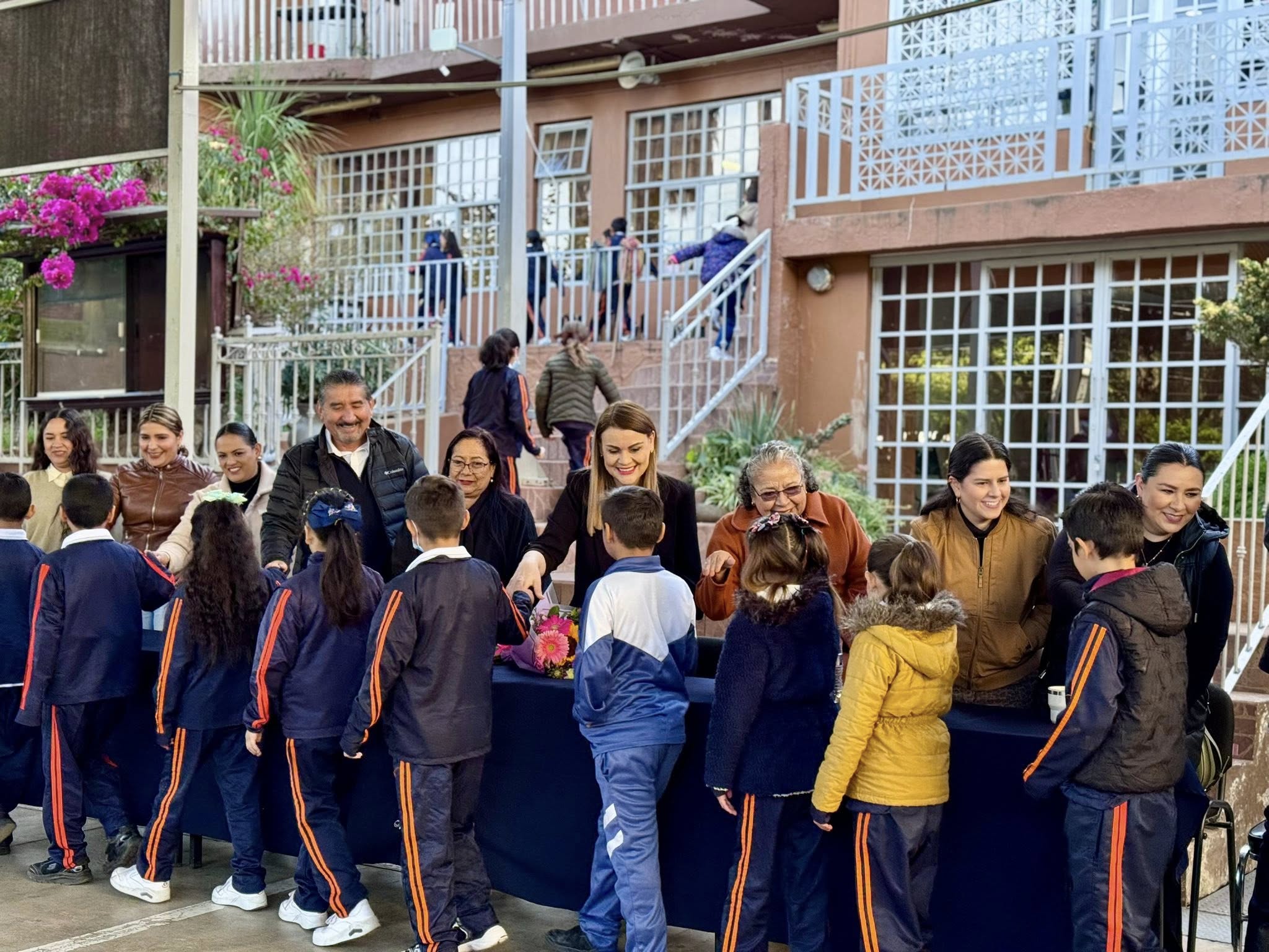 La visita a esta escuela tuvo un significado especial, ya que se constataron importantes avances en beneficio de la comunidad escolar, entre ellos la solución definitiva al problema de deslave de agua en el patio del plantel, una acción que contribuye a brindar mayor seguridad a las niñas y los niños. Asimismo, se reconoció la entrega de mochilas y uniformes escolares, apoyos que fortalecen la economía familiar y favorecen la permanencia escolar.