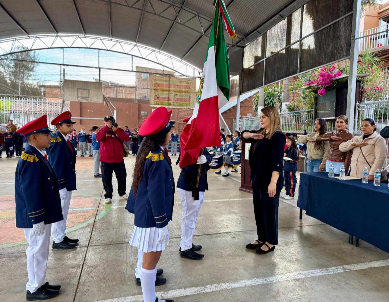 De igual manera, se informó que la institución cuenta ahora con una instructora de banda de guerra, lo que permitirá fortalecer la disciplina, el trabajo en equipo y el sentido de orgullo y pertenencia entre las y los estudiantes.