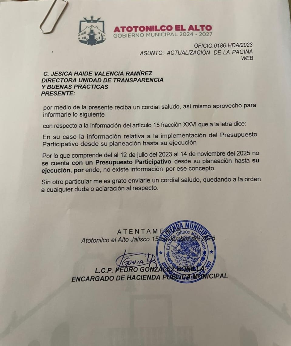 XXVI. En su caso la información relativa a la implementación del Presupuesto Participativo desde su planeación hasta su ejecución; y Ver artículo año 2025