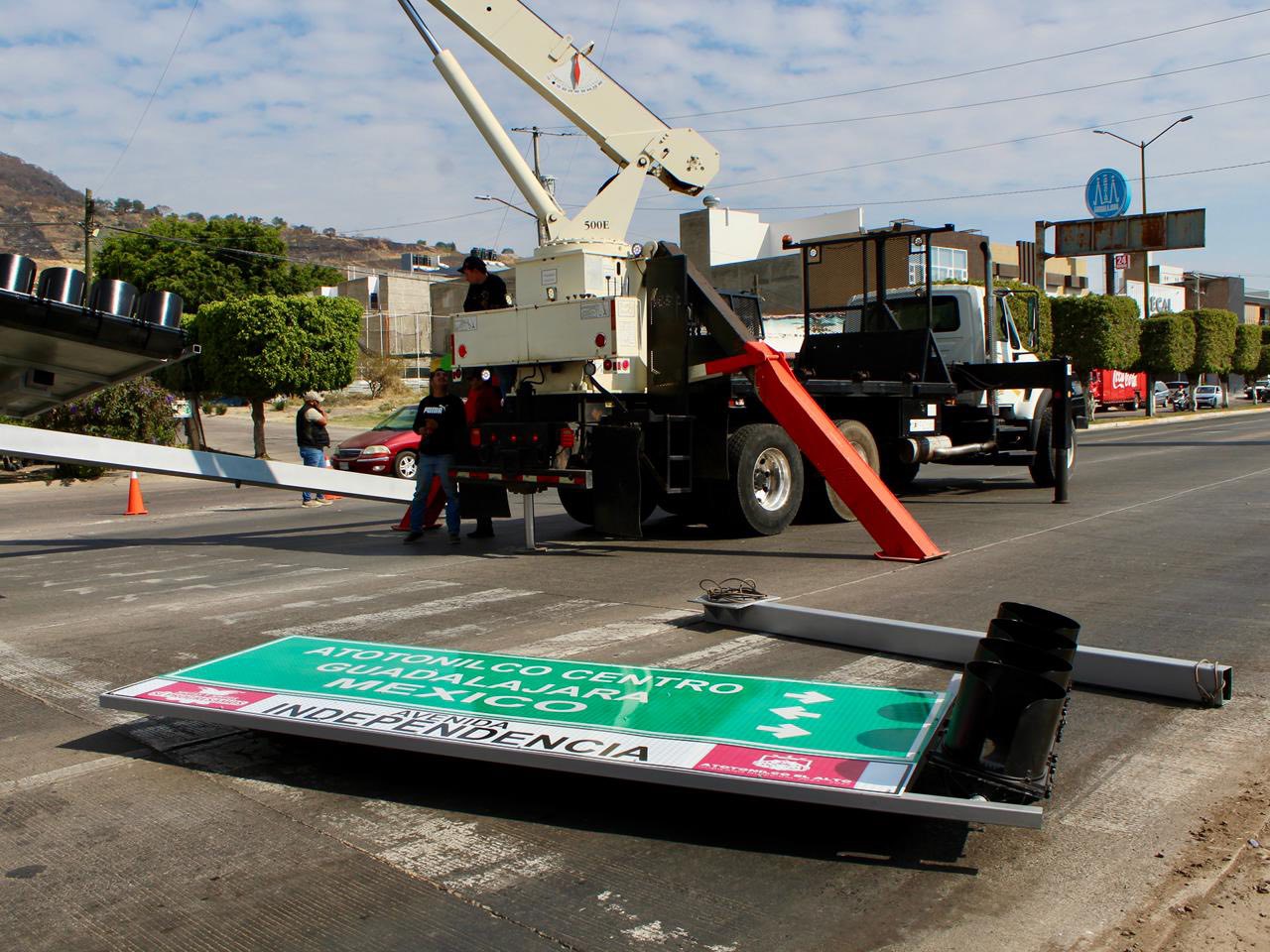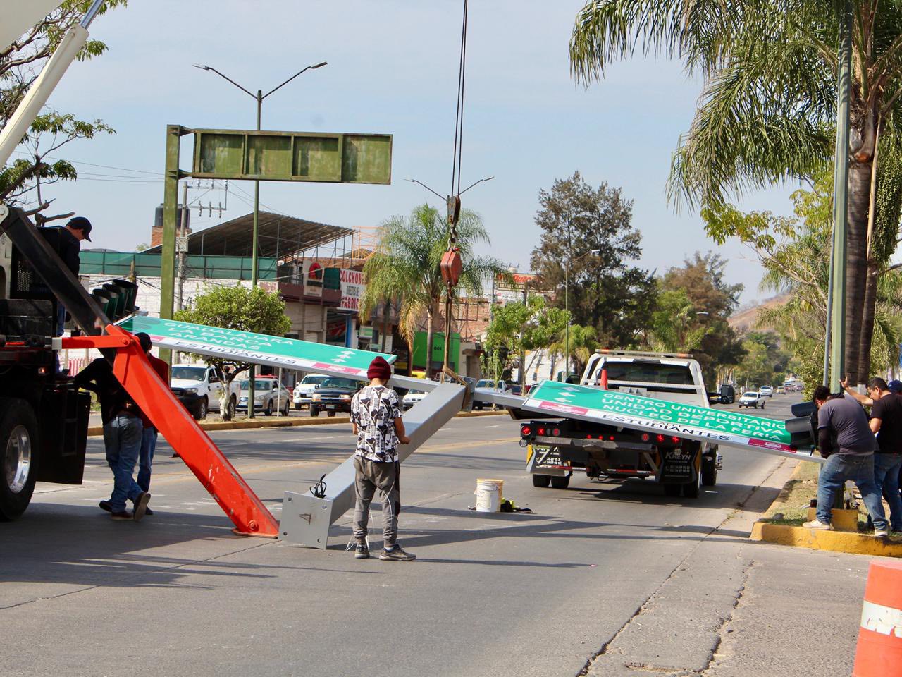 La Dirección de Movilidad y Transporte llevo a cabo los trabajos de instalación del semáforo ubicado sobre la avenida Independencia, en el cruce hacia la entrada de la preparatoria, luego de que este resultara dañado tras ser derribado por un camión en días pasados.