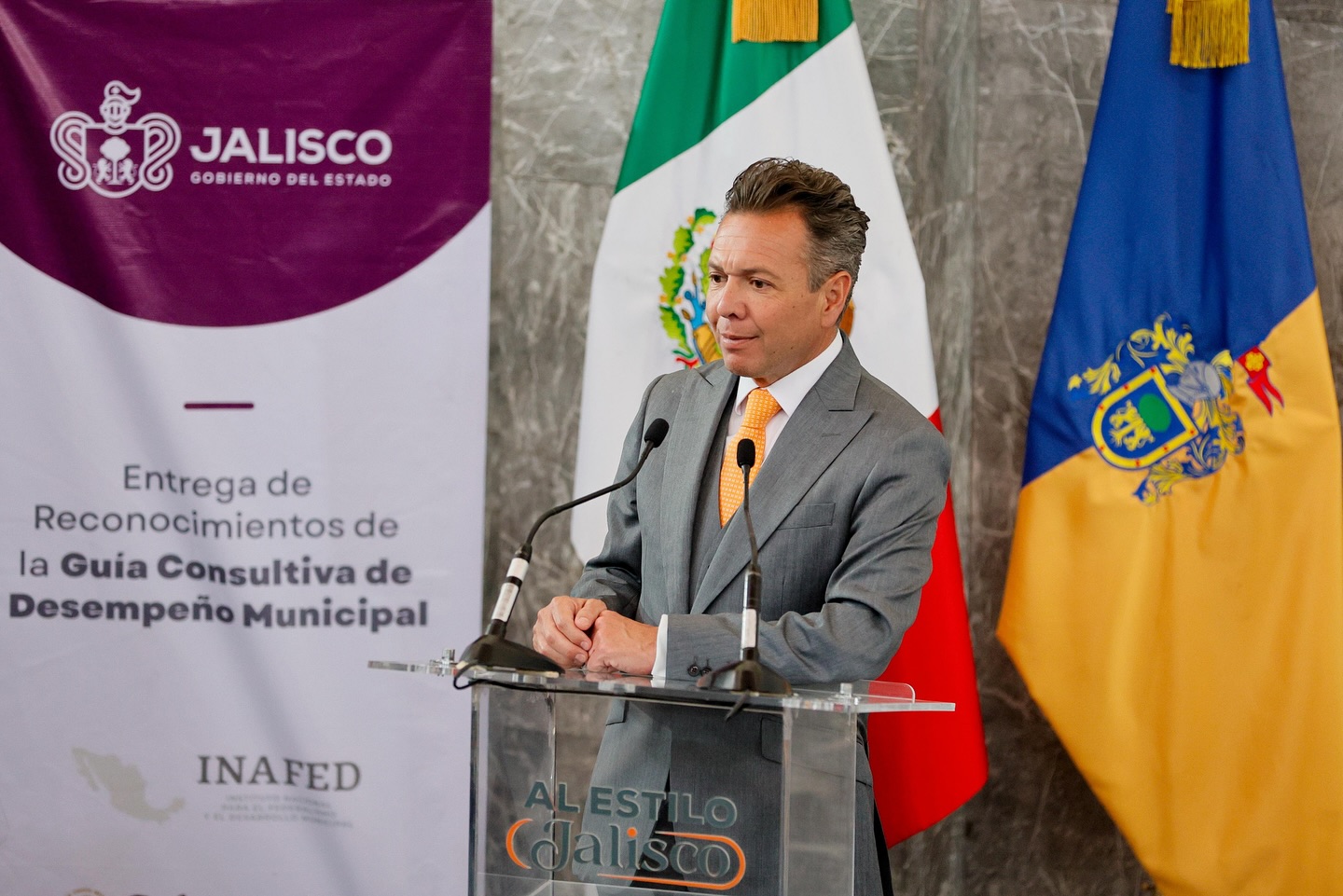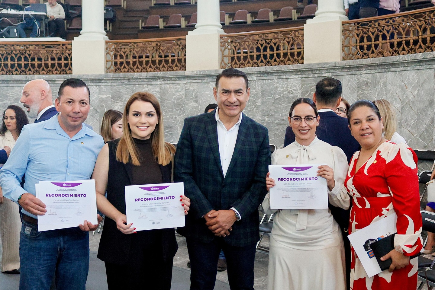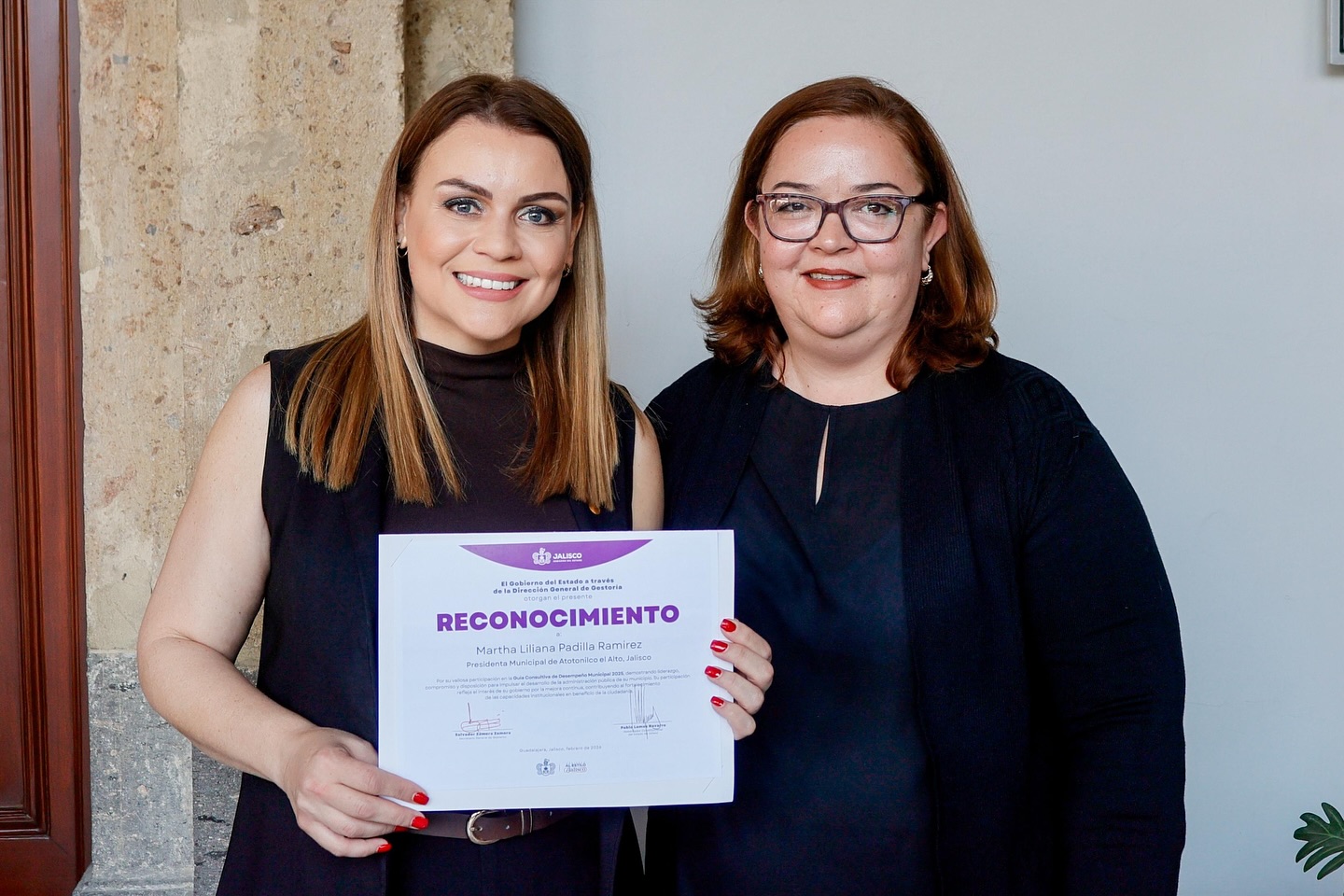 La Presidenta Municipal de Atotonilco el Alto, Liliana Padilla, acudió al Palacio de Gobierno del Estado de Jalisco para participar en la Entrega de Reconocimientos por la Implementación de la Guía Consultiva de Desempeño Municipal 2025, evento encabezado por el Gobernador de Jalisco, Pablo Lemus Navarro.